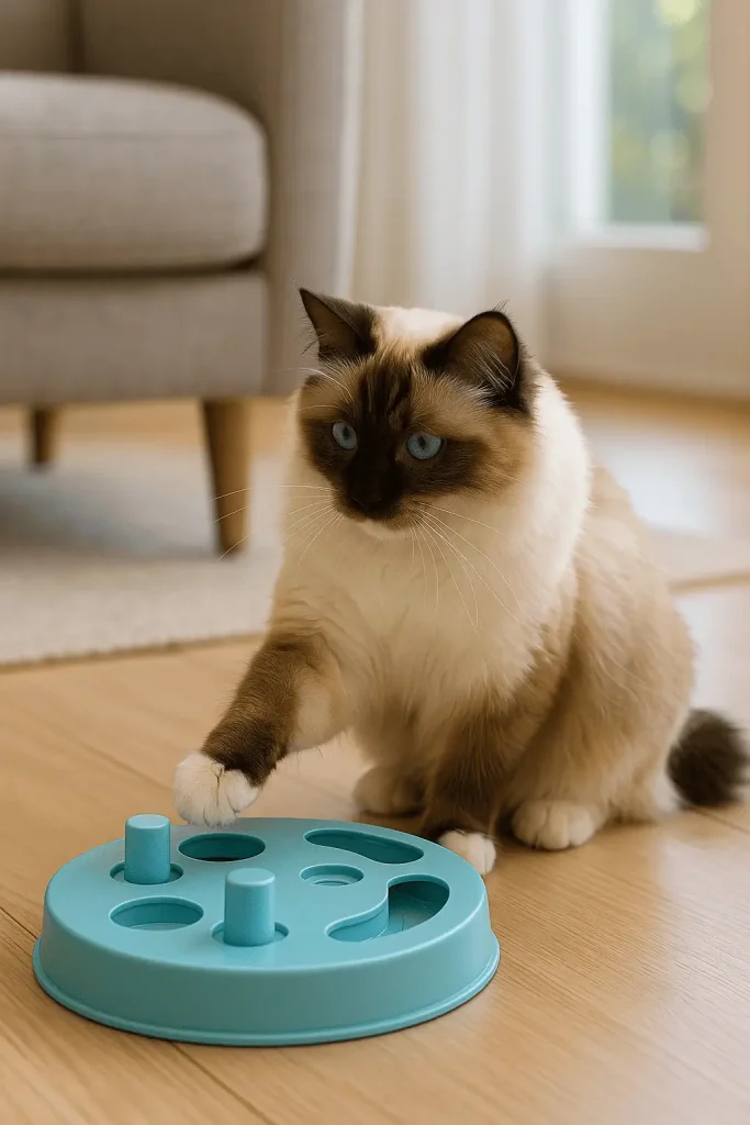 Mental stimulation helps prevent boredom and strengthens the bond between the cat and its family
